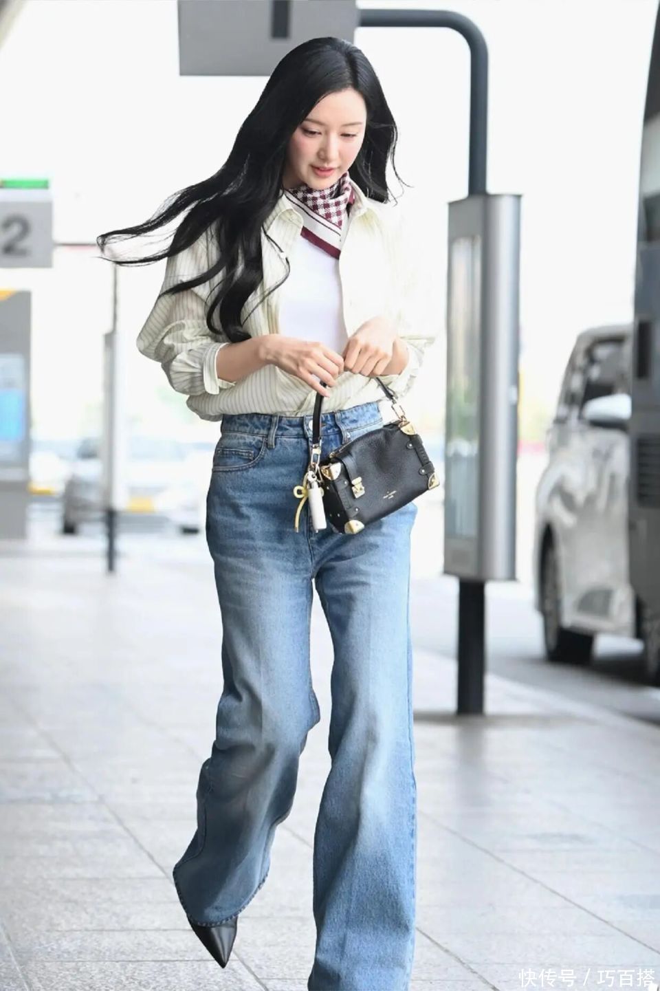 其次需要谛视牛仔裤的宽松度,从博主上身遵守来看,喇叭裤的上身遵守渊博于加肥加长拖地阔腿裤,应用弧线线条增多经营感,松驰不会产生审好意思疲困。