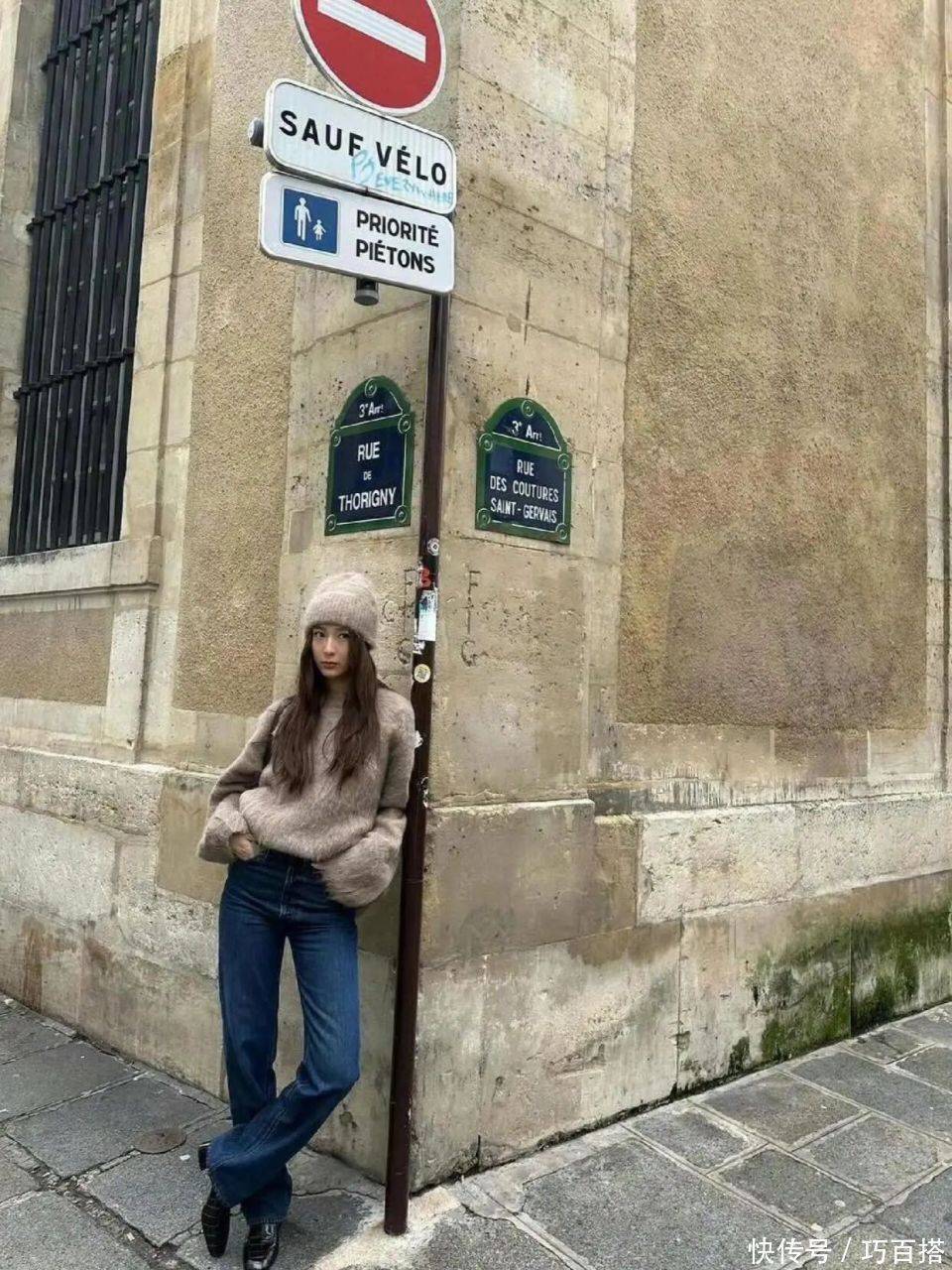 牛仔裤+尖头鞋的组合在秋冬天比径精练腿还火,单品上身既能凹出大长腿又能保证弥漫干净利落,腿短姐妹、腿粗、腿不直的姐妹皆合适采取。