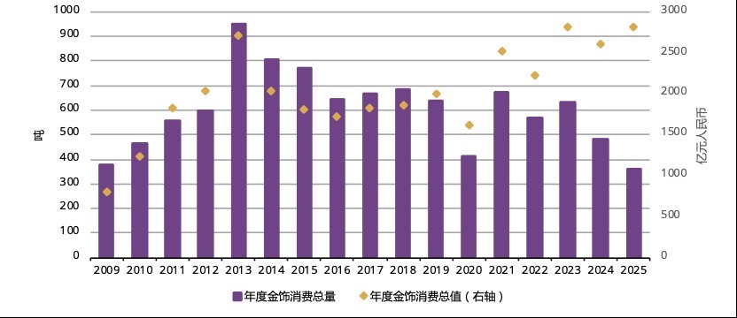 2025年,东说念主民币金价大涨59%,大幅戒指了滥用者的购买力。此外,受政事地点和经济增长不祥情味的影响,滥用者的滥用派头趋于保守,进一步缩减了金饰等非必需品类的可运用开支。