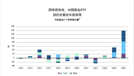 黄金ETF方面,四季度中国黄金ETF流入510亿元东说念主民币,创有史以来最强季度推崇。中国黄金ETF也创下历史最好年度推崇,2025年全年累计流入达1100亿元。黄金ETF钞票处置总畛域激增243%,升至2418亿元;抓仓量飙升至248吨,较2024年末翻了一倍以上。两项数据均创历史新高。